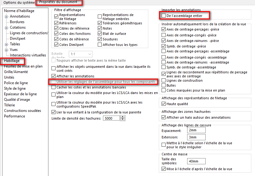Pour les Mises en plan il faut aussi regarder les Propriétés du Document: