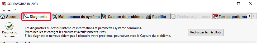 As-tu lancé Solidworks Rx pour faire un diagnostique?