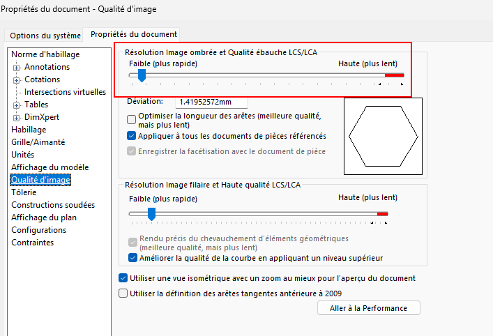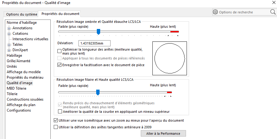 2021 Premium. Quand j’ouvre Solidworks, parfois j’ai un message de pilote non compatible, et parfois, pendant des semaines, aucun message. J’avais également débloqué l’affichage RealView (que j’utilise très rarement) en modifiant la base de registre, car souvent bloqué chez NVIDIA. Comme je suis passionné d’impression 3D depuis de nombreuses années, (j’ai été 13 ans tourneur et fraiseur), mon Solidworks est réglé avec une haute définition, pour ne pas avoir de problèmes de « facettes » lors du tranchage des fichiers. J’ai déjà fais des ensembles très lourds avec de très nombreuses pièces sans problème.je vais donc essayer la sauvegarde en parasolid.