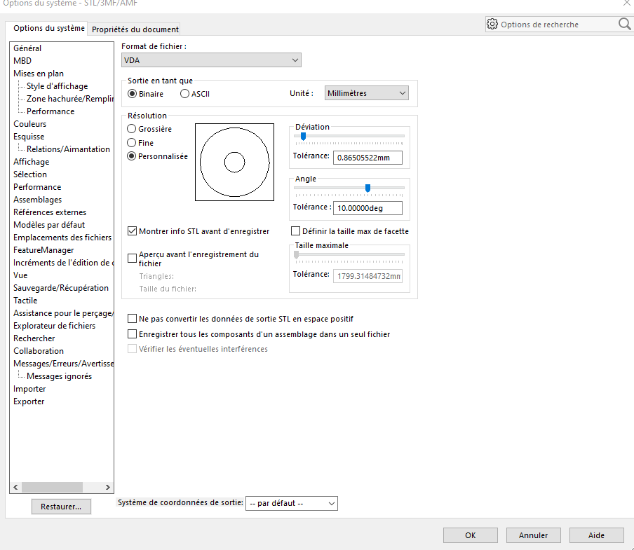 Et pour moi cela ne change rien à la facétisation lors d’un export (juste pour l’affichage graphique) Pour la facétisation lors d’un export voir dans le format stl: