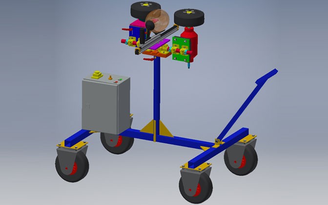 Deux roues qui tournent en sens inverse et lorsque un des axes se décalent de quelque millimètres cela part à droite ou à gauche et comme la vitesse est variable cela plus ou moins loin