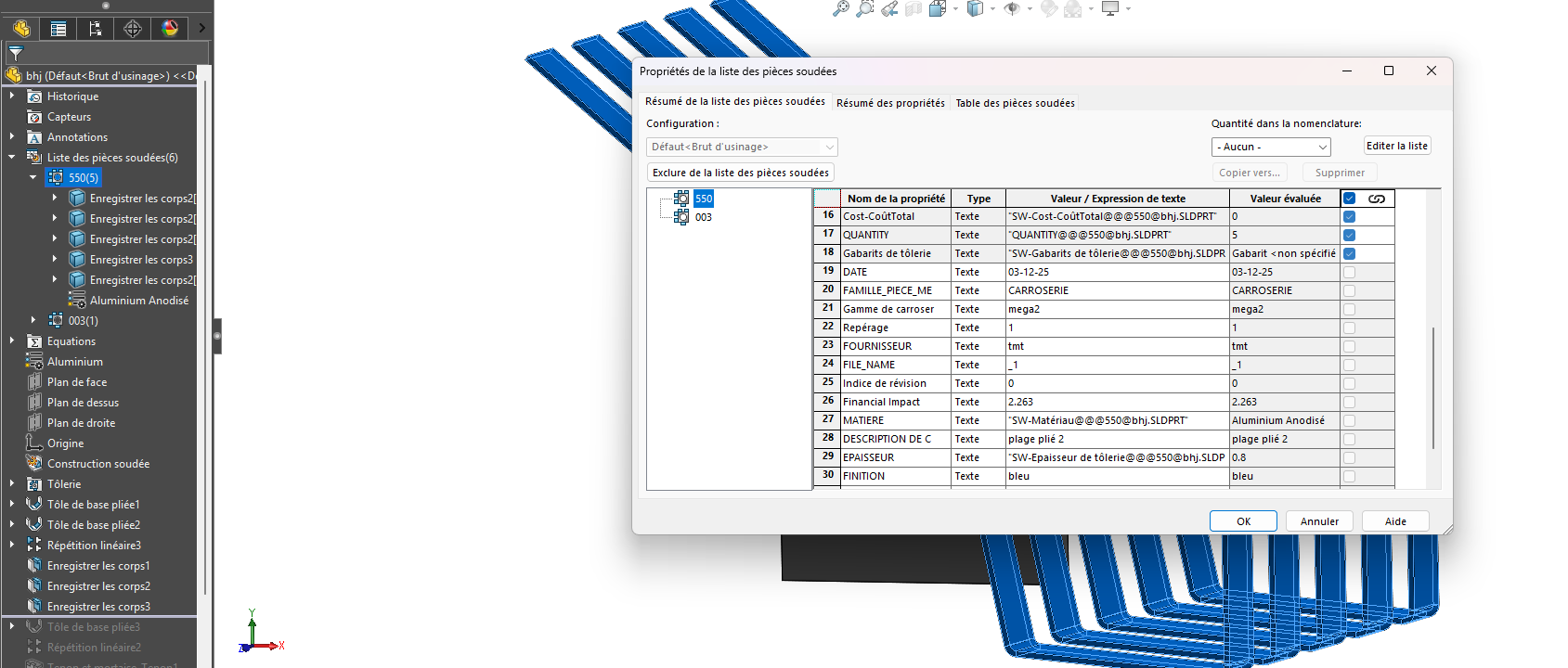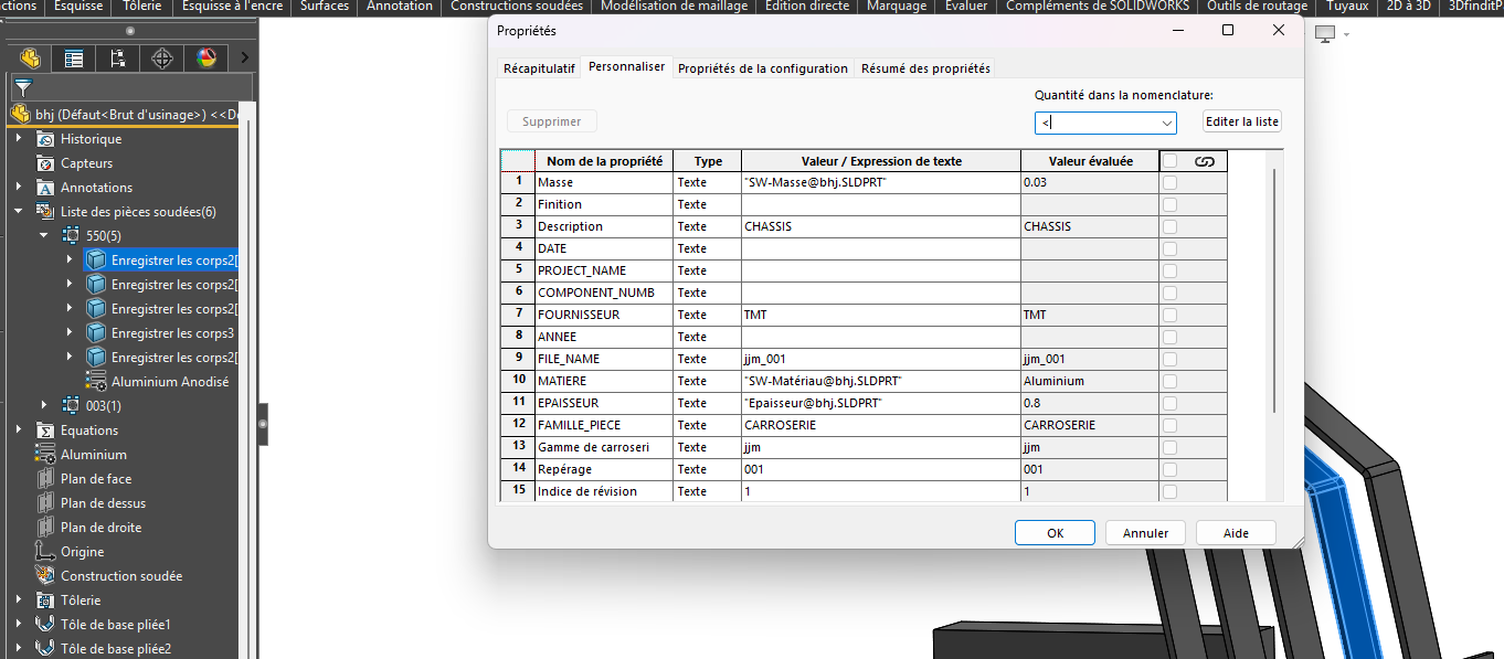 Des sous-ensembles soudés gérés en pièce multicorps (avec leur mise en plan (pièces par pièces + tolérances et repères soudure au niveau de la pièce),