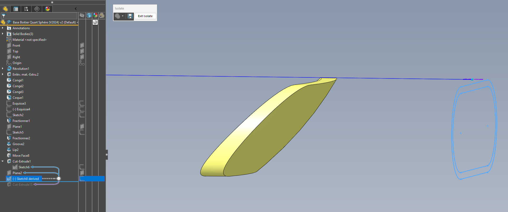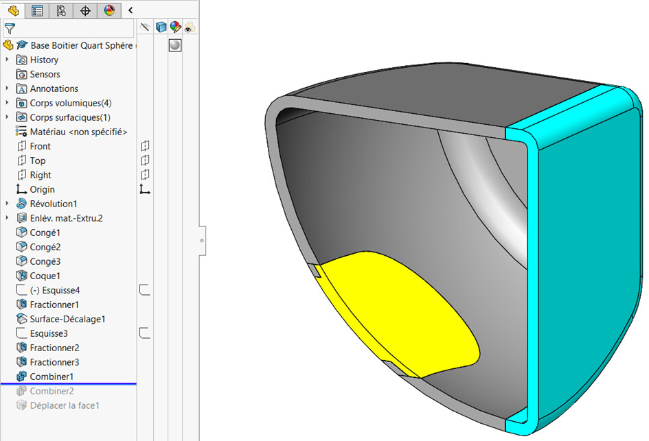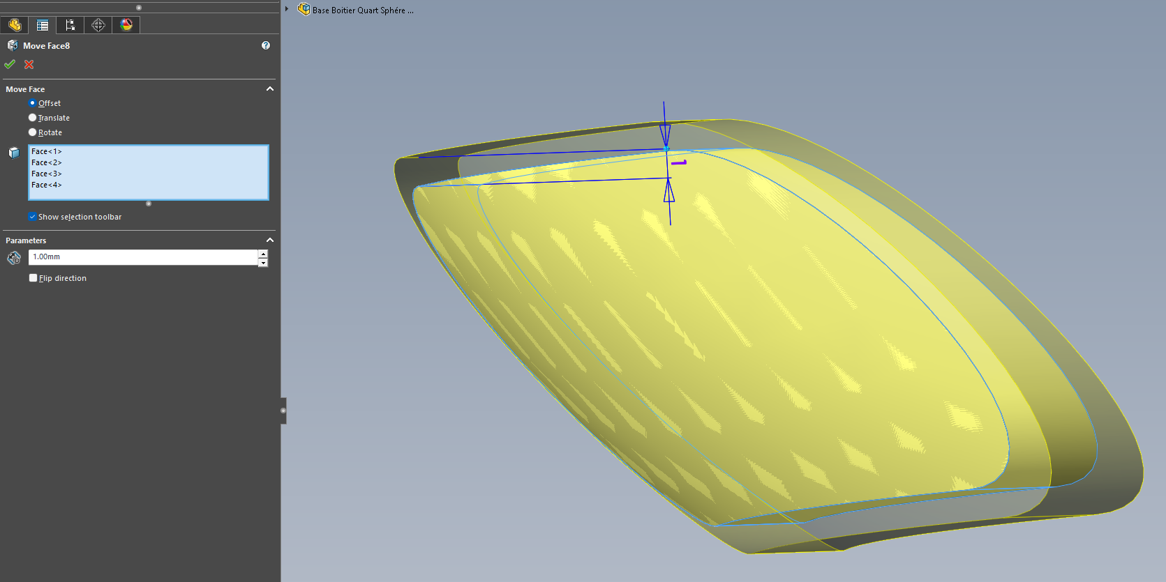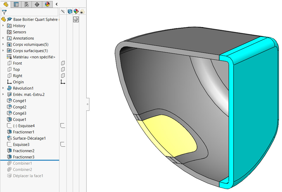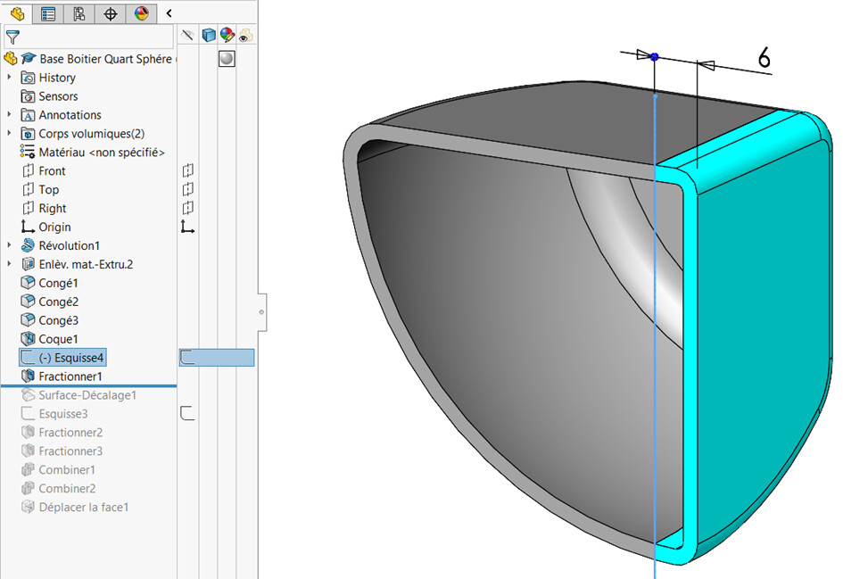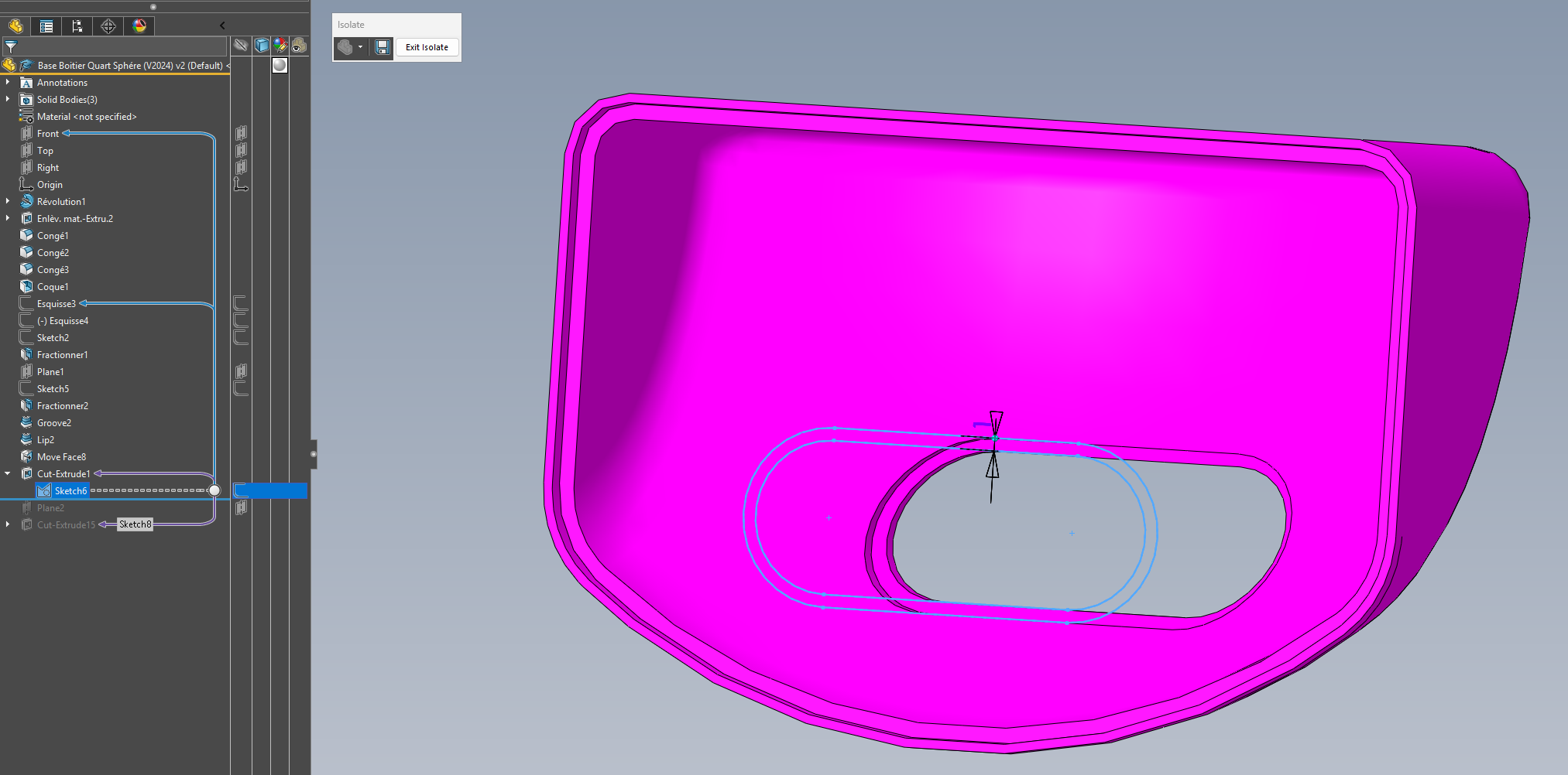 Dzielenie poprzedniego fioletowego konturu przez odsuniętą powierzchnię wewnętrzną: