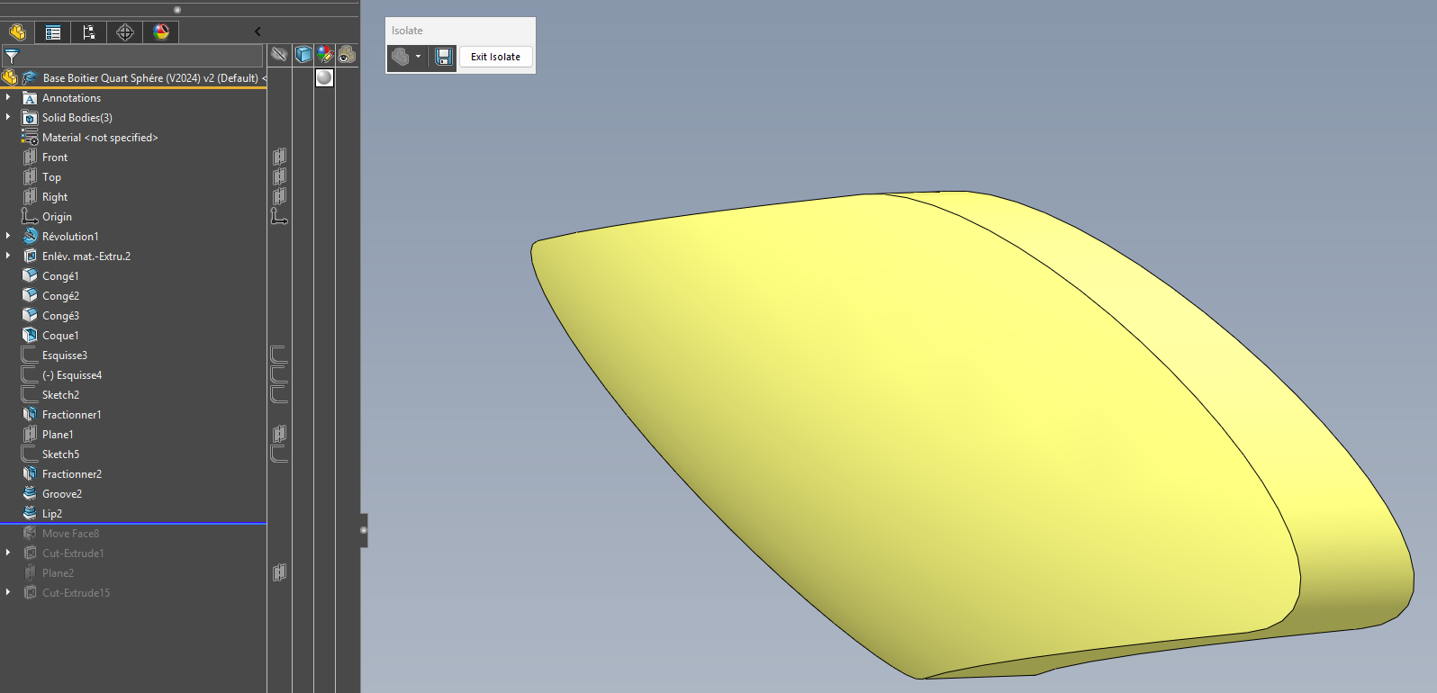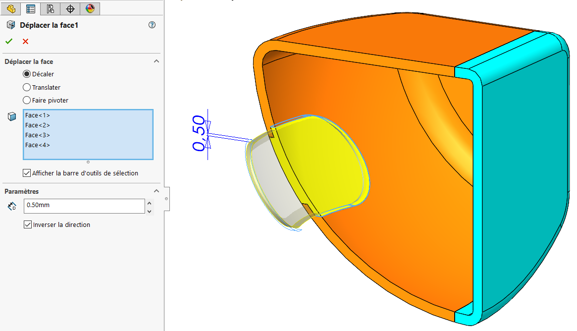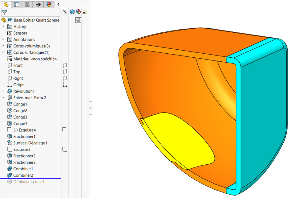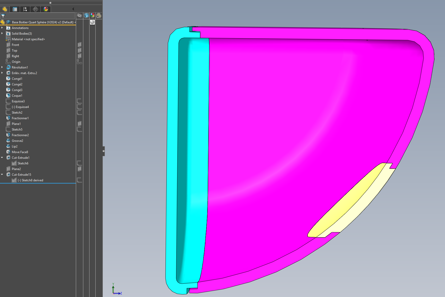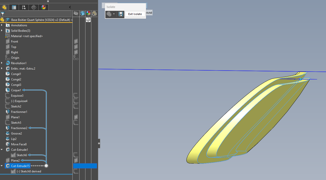 Dzielenie poprzedniego fioletowego konturu przez odsuniętą powierzchnię wewnętrzną: