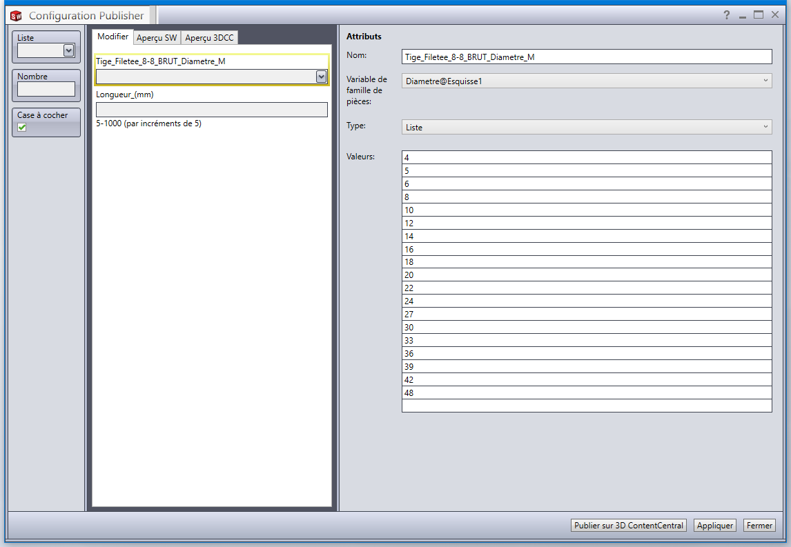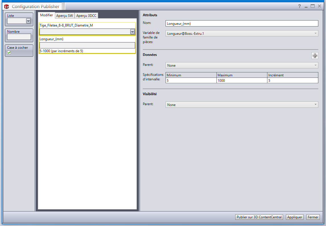Je n’utilise pas Config Publisher mais je ne suis pas sûr que l’on puisse rentrer une variable comme la longueur sans définition en amont (liste/famille de pièces). A confirmer