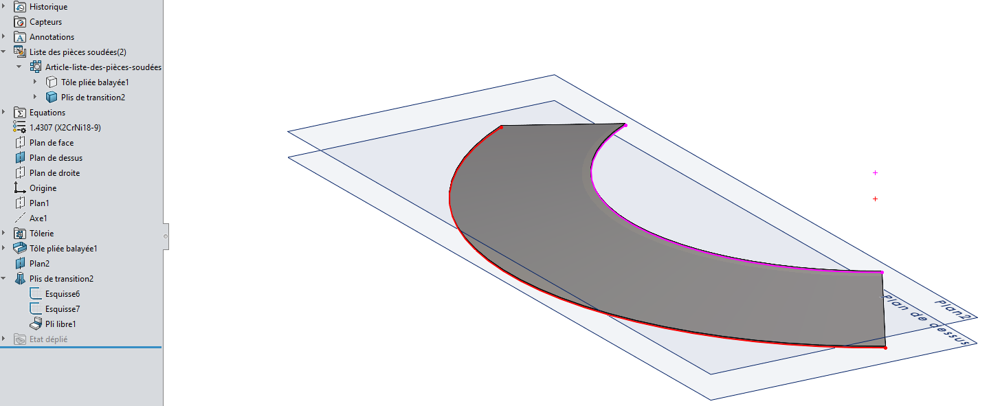 utiliser la fonction « pli de transition » en mode lisse pour une réalisation par roulage ou brisée pour réalisation par croquage.