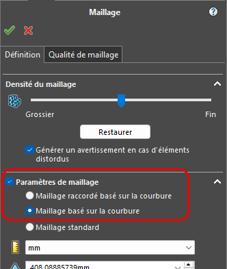 Les options « maillage basé sur la courbure » sont généralement plus performantes.