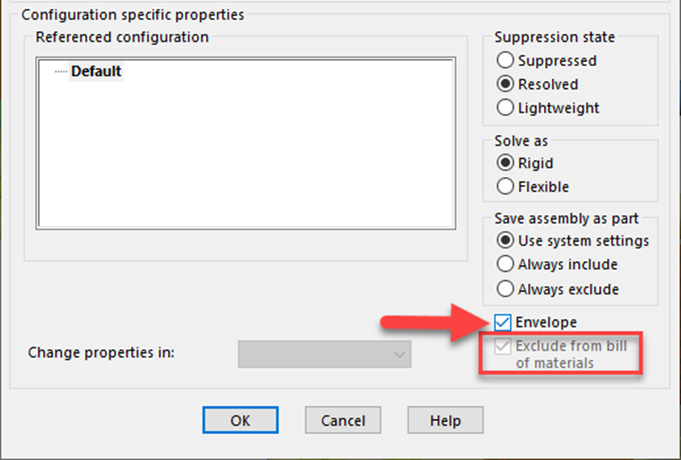 Il me semble que par défaut les composants dits « enveloppe » sont automatiquement marqués comme exclus de la Nomenclature.