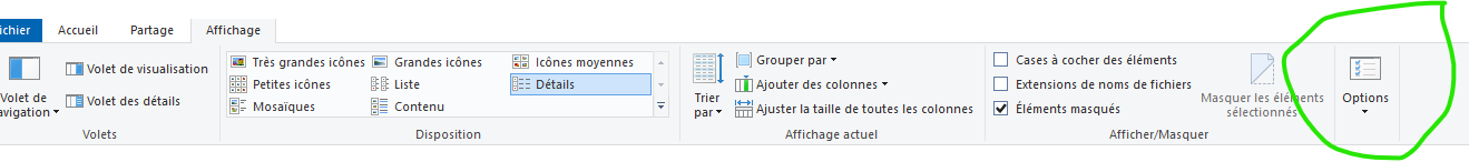Sur Windows 10 de mémoire, c’est dans affichage puis options des dossiers