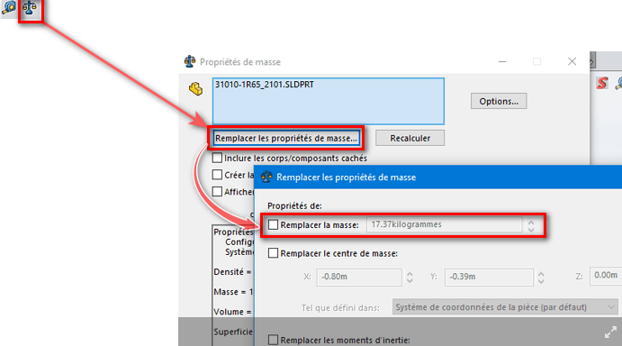 Vérifiez que la masse de votre composant ne soit pas renseignée « manuellement » dans ses propriétés de masses: