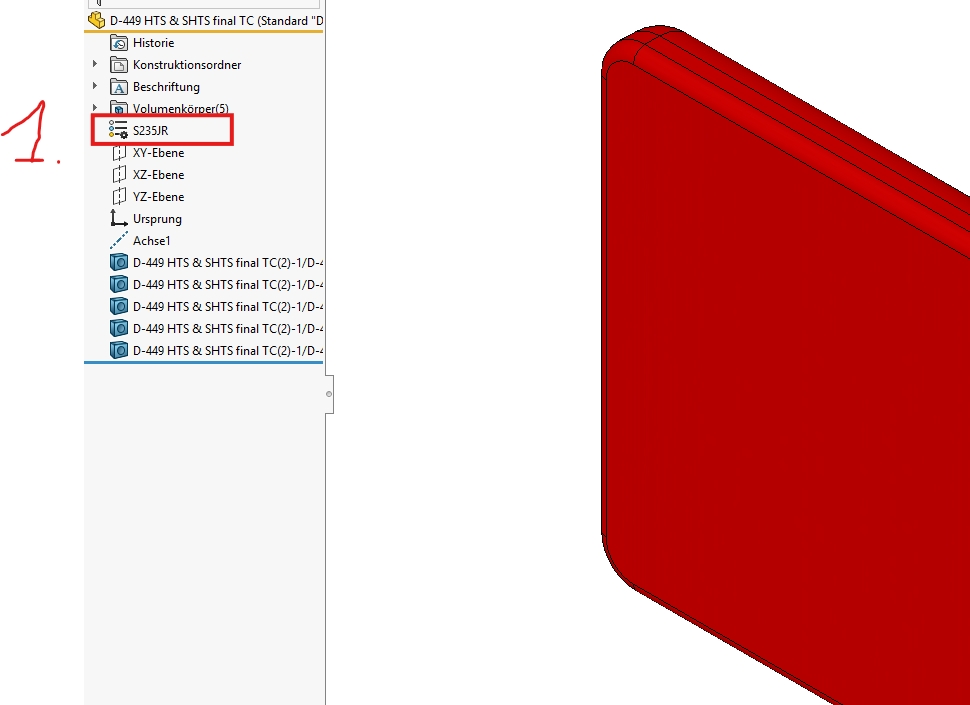 Avec ma partie import, un message d’erreur est toujours apporté. Le matériau S235Jr obtiendra automatiquement toutes les pièces d’importation. Je change simplement le matériau pour un autre pour le rendre correct. Alors SolidWorks ne l’aime plus tellement. Quelqu’un peut-il m’aider là-bas ?
