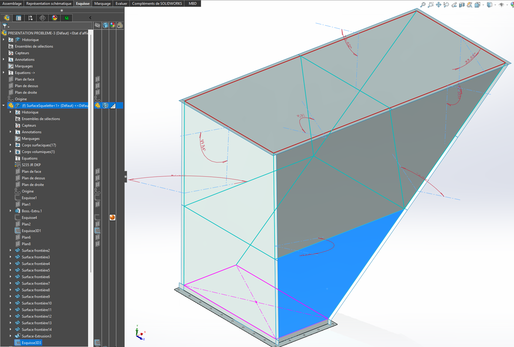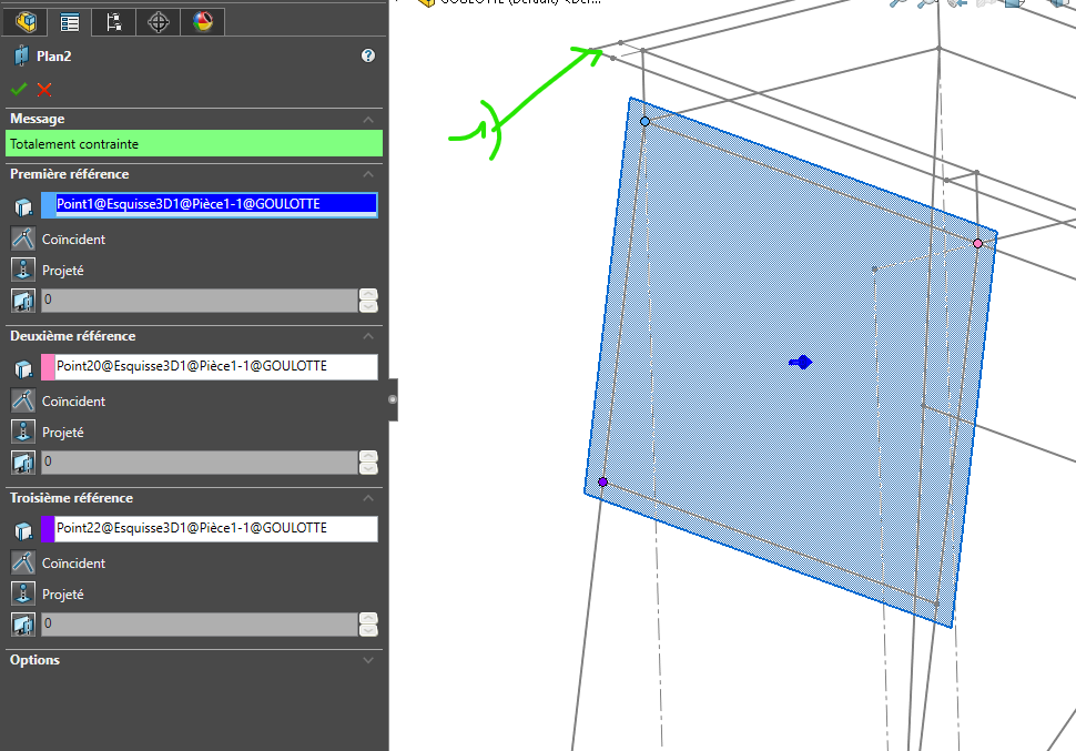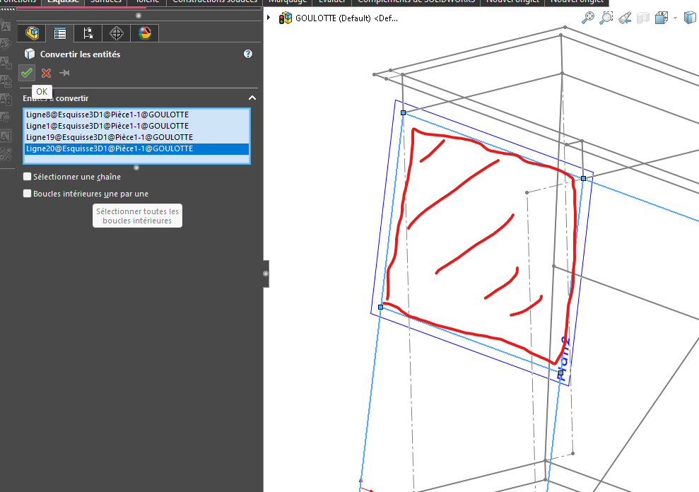 Citation = Dans la pièce squelette dont les esquisses 2D et 3D définissent la géométrie globale, j’ajouterais l’ensemble des surfaces planes qui constituent à la fois l’intérieur de la goulotte, ainsi que les faces d’appui des rabats entre éléments de tôlerie.