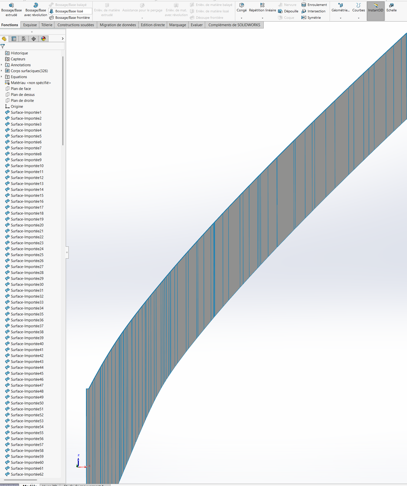 Otworzyłem plik DXF w Autocad i jest w porządku w mm To oprogramowanie systematycznie umieszcza go w calach i nie ma sposobu, aby go przeskalować. Co więcej, przed SW konwertował DXF3D na powierzchnię ze szkicami, wszystko było bardzo czyste, teraz są to tylko zaimportowane powierzchnie, są ich dziesiątki, tylko dla prostego kształtu... Krótko mówiąc, zanim było to proste... Zmarszczenie brwi: