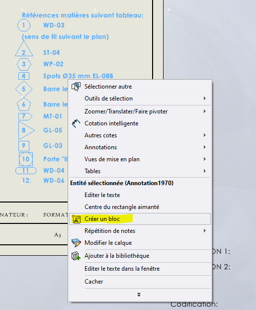 Il est possible de créer un bloc d’esquisse avec les annotations de la légende et de l’enregistrer.