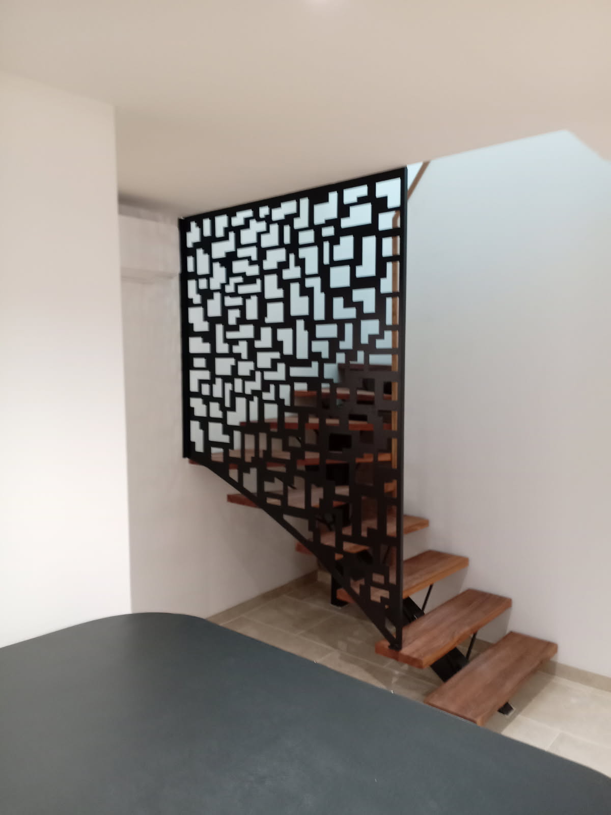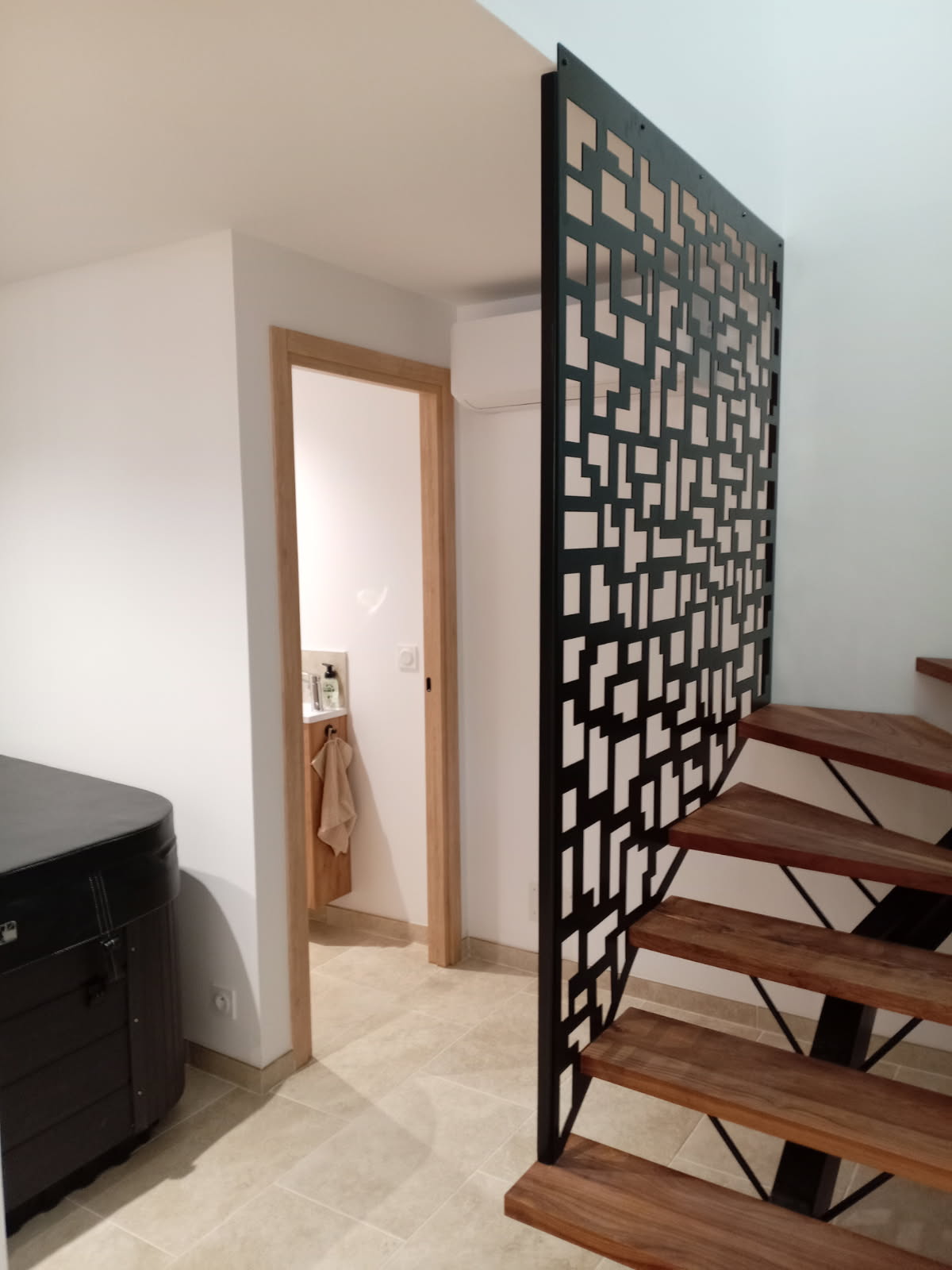 La partie métallique est partie pour thermo-laquage, et les marches bois sont en cours de fab,