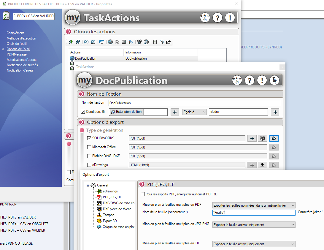 Lorsque ma mise en plan est validée, une tâches PDM imprime la mise en plan (enregistrement PDF), pour qu’il parte dans l’ERP.
