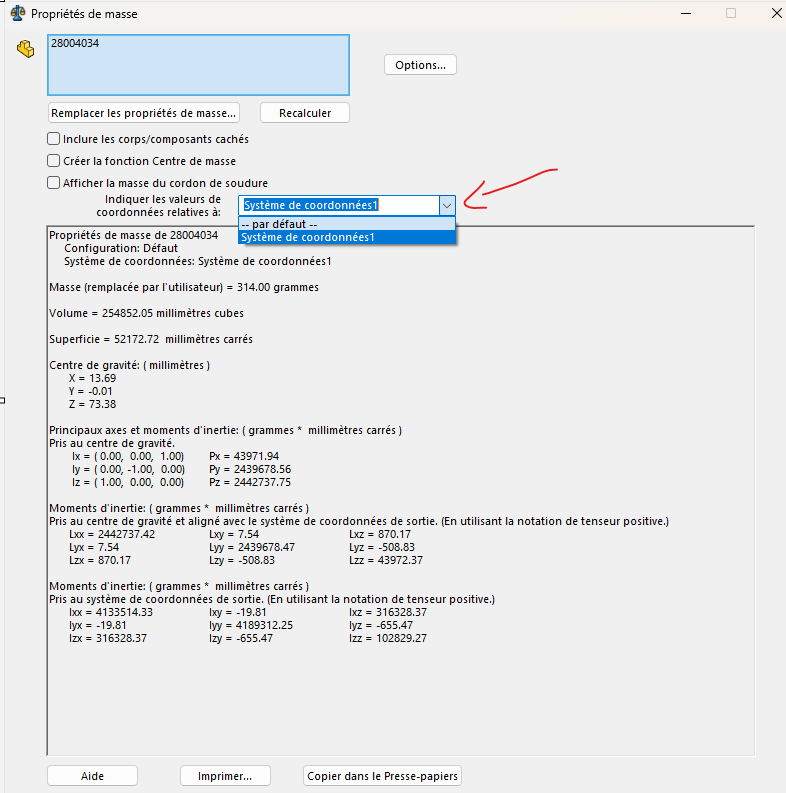 Ainsi, lorsque tu calculeras ton moment d’inertie, « plus qu’à » changer dans "Indiquer les valeurs de coordonnées relatives à " pour faire référence à ton nouveau système de coordonnées