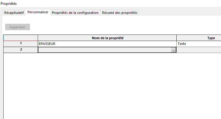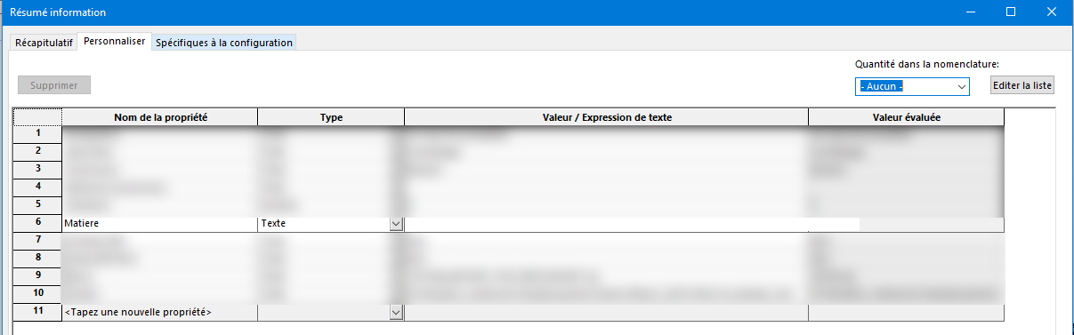 Verifiez si la zone "Résumé information → Personnaliser ou Spécifique à la configuration n’est pas « vide » (en tout cas pour la propriété matière.)