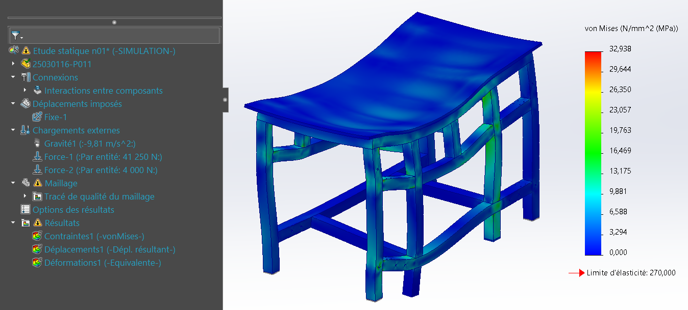 J’ai conçu une structure aluminium (table) supportant une charge morte et vérifié sa tenue à la masse qui sera appliquée sur le plateau.