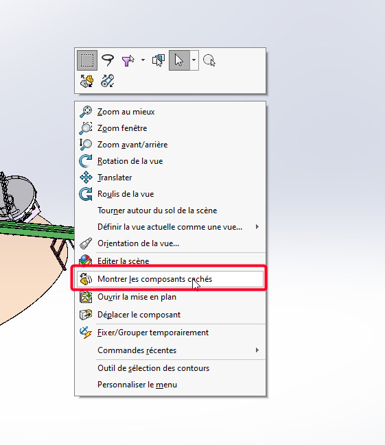 Przepraszam za głupie pytanie, ale w SolidWorks mam zestaw stu części, niektóre ukrywam dla potrzeb projektowych Czy jest jakiś przycisk, który pozwala wyświetlić wszystkie ukryte elementy jednocześnie?