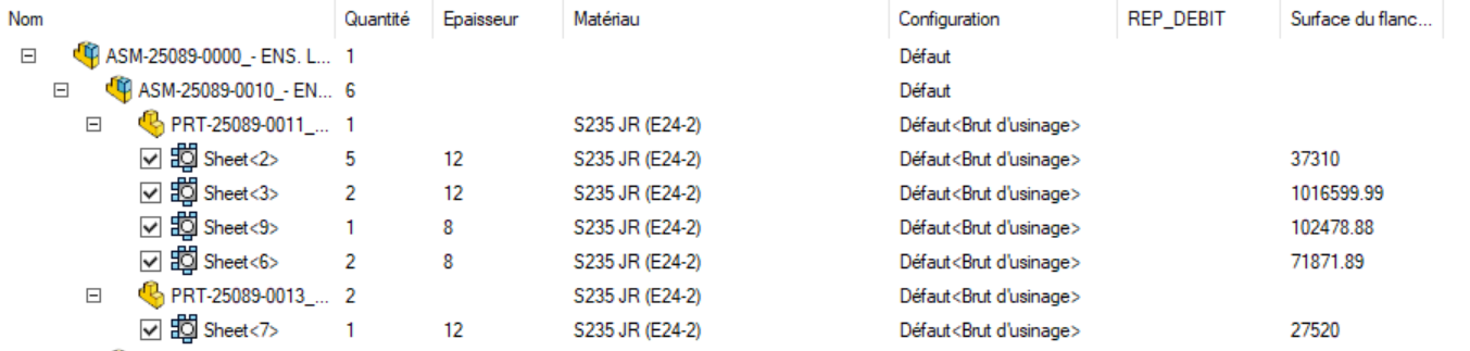 Probleme de quantité sur l'export excel d'un assemblage avec sheetmetal manufacturing