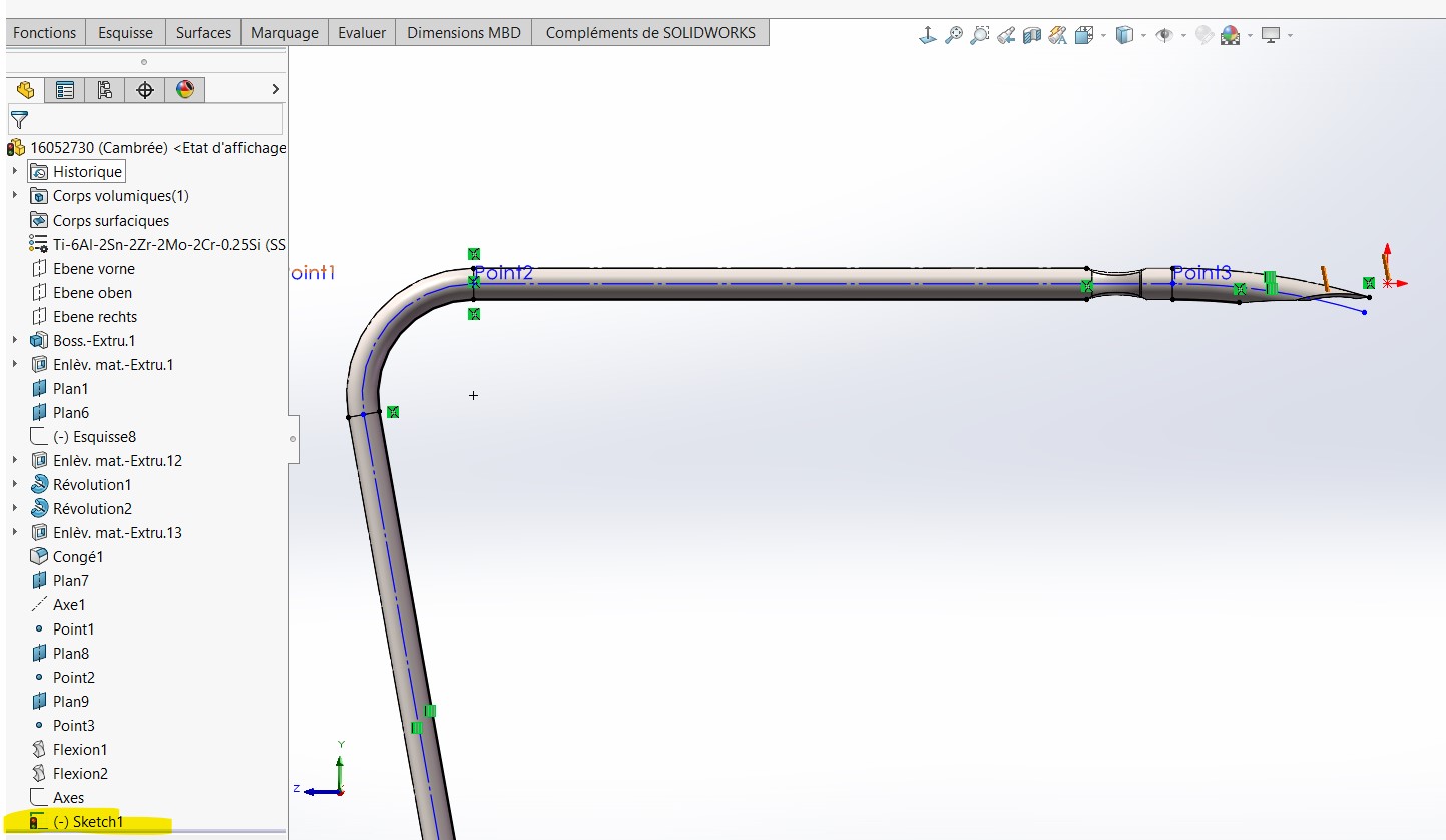 les traits d’axes sont crées dans une esquisse dans le 3D.
