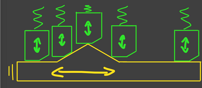 Edit: Je précise que la pièce jaune est flexible dans le même sens de déplacement que la pièce verte, et donc qu’en gros les 3 sommets inférieurs de la verte sont des points de contacts potentiels et doivent pouvoir déterminer sa position sur la surface de la pièce jaune.