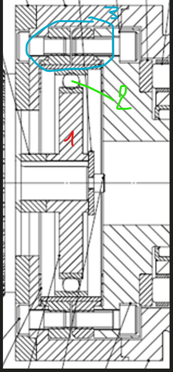 De plus on peut imaginer que sur la partie centrale l’alésage 1 sert de dégagement pour la rondelle et la vis 2 quand l’ensemble se déplace, ou son démontage ?