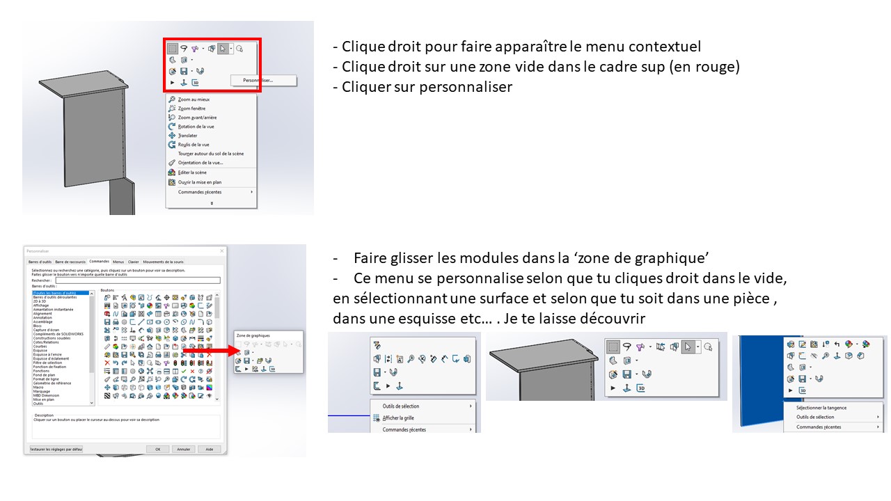 Question: sur mon Solidworks, sur le Clic Droit de ma souris, j’ai tous mes raccourcis de formes de dessin d’esquisse.
