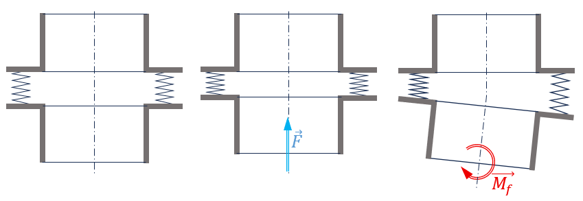 une rotation autour d’une direction radiale génère un moment radial Mf (flexion). La raideur en flexion est dans ce cas dépendante de la raideur axiale et des dimensions des faces d’appui.