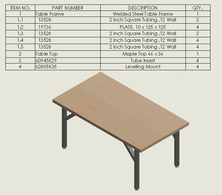 Pour faire apparaitre les « descriptions » des mécanosoudés dans une feuille de mise en plan il faudra utiliser une table de liste de pièce soudées: