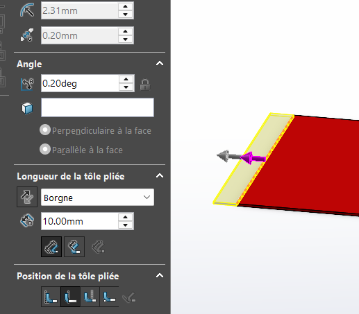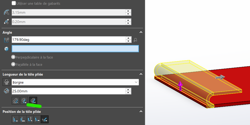 En revanche avec 179.99 un pli disparait et ne revient plus si je change par un autre angle un nouveau bug sympathique pour le module tôlerie!