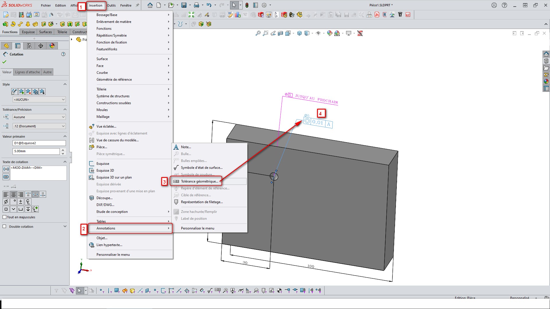 Jak wstawić tolerancje geometryczne do symbolu centrowania 3D i znaleźć je na rysunku? (z Solidworks)