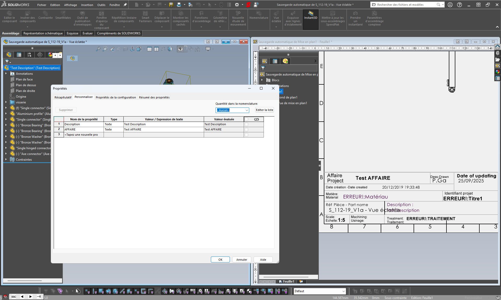 Zwykle, gdy pojawia się ten błąd, jest to spowodowane tym, że odpowiednie właściwości nie istnieją w pliku, w tym przypadku w pliku asm podzespołu. Przyjrzałbym się więc niestandardowym właściwościom 3D podzespołu. Model planu ze wskazaniami w kartuszu na materiale, obróbka, stan powierzchni wydaje się dobrze pasować do części, mniej do montażu. Być może użyłeś niewłaściwego szablonu dokumentu do swojego rysunku?