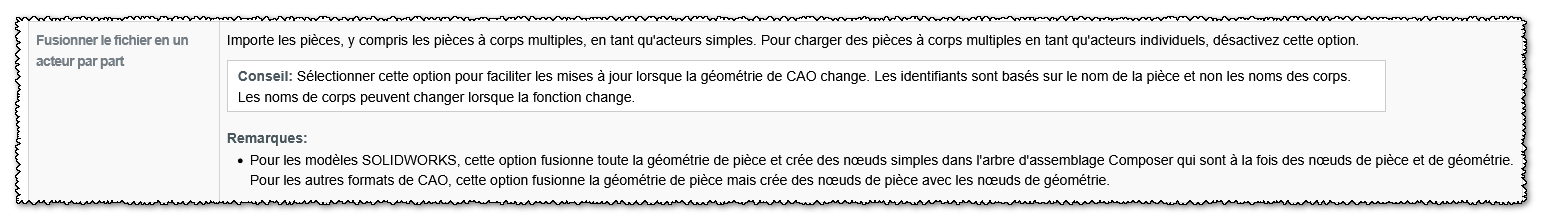 C’est simplement à l’importation, il fallait cocher une case pour fusionner tous les corps en part.
